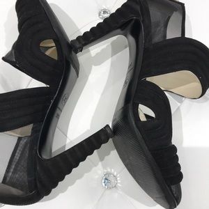 Authentic Chanel pump constructed of black mesh and black suede round toe 4”heels functional back zip with CC monogram these are Europe size 8,5 fits like US 8