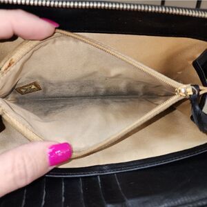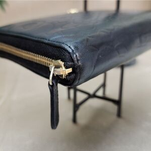 Condition - this wallet is in excellent used condition. The body of the wallet is so buttery soft with the Lambskin leather. The corners and edges have minor signs of wear and slight peeling. The gold tone Camellia on the front has minor fading of the gold tone coloring. The inside is also in good used condition. It is clean and super spacious. There are card slots and slip pockets galore plus there is a zipper change pocket tucked behind the card slots. The wallet can easily carry all of your credit cards, money, ID and other important documents as well as a large phone. Wallet will come with a dust bag.