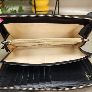 Authentic Chanel Lambskin Camellia Embossed Zip Around Organizer Wallet Black w/ Dust Bag