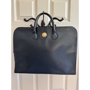 Authentic Chloé Navy Leather Briefcase Tote – Classic Gold Medallion Logo