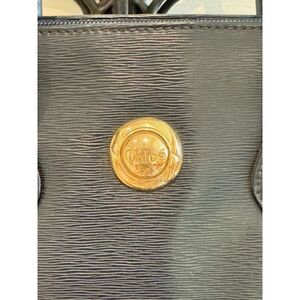 Chloé briefcase tote, luxury work bag, navy leather tote, authentic Chloé handbag, gold medallion logo bag, designer laptop bag, women’s professional tote, vintage Chloé leather bag