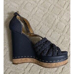 Made in Italy, these Chloe sandals are perfect for summer. Denim is in great condition, except for a minor scuff on one side. The footbed looks clean. Minor wear with scuffs at the wedge, please see pictures. Selling as is. The original shoe box is not included.
