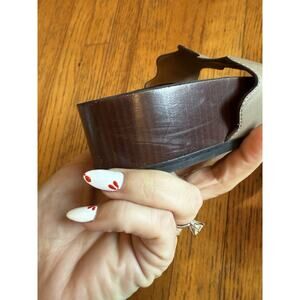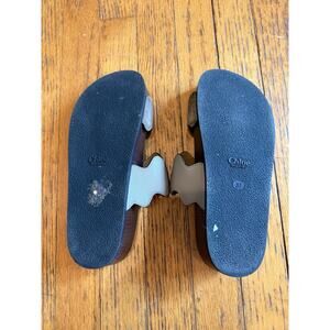 Authentic Chloe Carrara Scalloped slide sandal Tan/Gray Size 37
