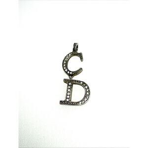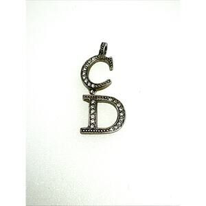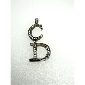 Authentic Christian Dior CD Crystal Rhinestone Pendant Monogram Silver-tone