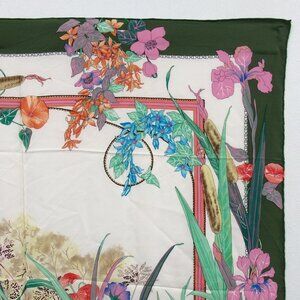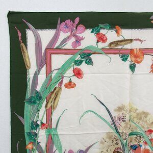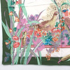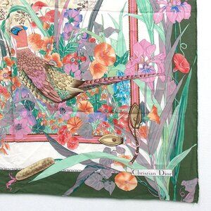 Authentic Christian Dior Flower pattern Bird pattern scarf silk [Used]