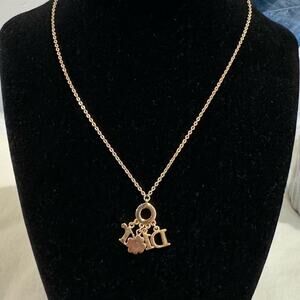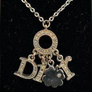 Authentic Christian Dior Gold Crystal Lucky Clover Necklace