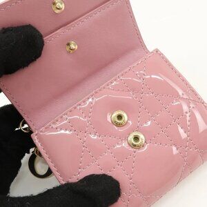 🩶Authentic Christian Dior Lady Dior Canage Patent Leather Tri-fold Wallet
