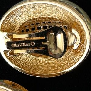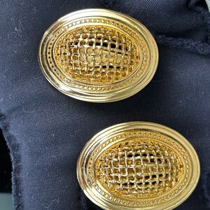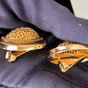 Authentic Christian Dior Oval Gold Plated Clip Earrings Mesh Statement