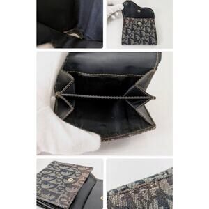 Authentic Christian Dior Saddle Trotter Canvas Navy Leather Bifold Wallet