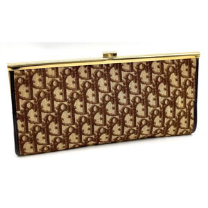 Authentic Christian Dior Trotter Canvas Brown Clutch Bag W/White Shop Dior Bag