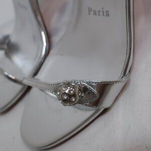 Authentic Christian Louboutin Atmospheria 85-Crystal Silver Strap Heel 39 US/8.5