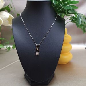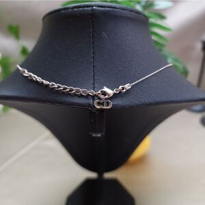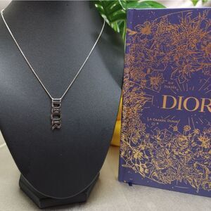 Authentic Christian Dior Metal Logo Bar Necklace Silver with Dior Notebook