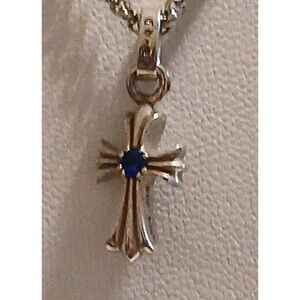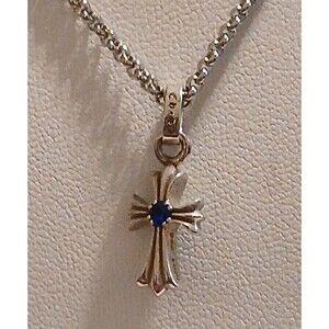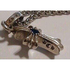 Authentic Chrome Hearts Cross Pendant Necklace With Bluestone+ CH Pouch