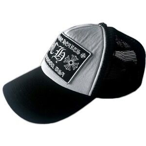 This is a rare Authentic Chrome Hearts Trucker Hat. Featuring a black and white colorway with a Hollywood USA patch, this hat exudes a rugged yet fashionable vibe. The adjustable and breathable mesh back design adds comfort and functionality, making it the perfect choice for everyday wear.