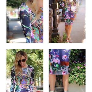 Scuba Material Clover Canyon 3/4 Length Sleeved Top AND matching scuba material pencil over the knee fitted skirt. Size XS. Worn one time. Perfect Condition. Tags on both pieces. sold together as a set. Unique Print. fitted crop top build. Can be worn together or separately. Fun and interesting. comfortable too! * All prices from my shop are negotiable, please message me to discuss *