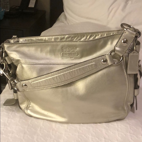 Beautiful Silver Coach Handbag in excellent like new condition. Silver lined in blue.