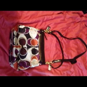NWT crossbody. Can be worn as crossbody or over the shoulder. Leather strap and accents are deep plum. Super cute!