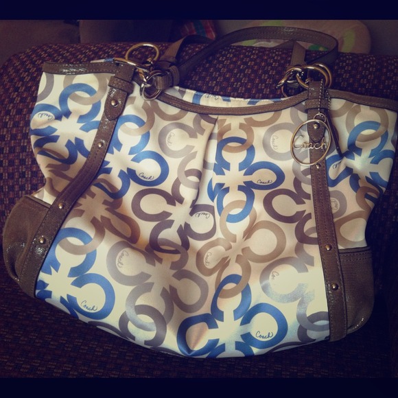 Like new!! Multicolor C's on signature Coach jacquard material, leather lining and sides, metal hardware. Adorable!