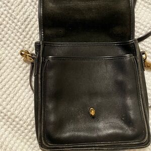 Black authentic vintage coach bag. Lots of wear as shown in photos. Inside pocket has a tear.