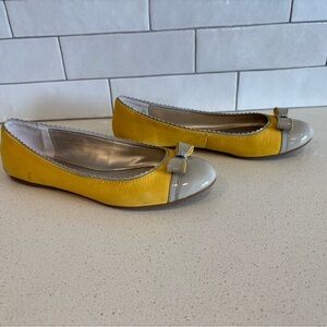 Authentic Coach Ballet Flats Butter Yellow Leather Silver Bow Shoes Size 7