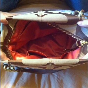 Beautiful Authentic Coach Brooke,. Classic signature C pattern Pre-Loved but still in great condition,. No Fraying around the top, no stains. Brown Leather trim & Straps with Gold hardware. 13 x 10 x 5