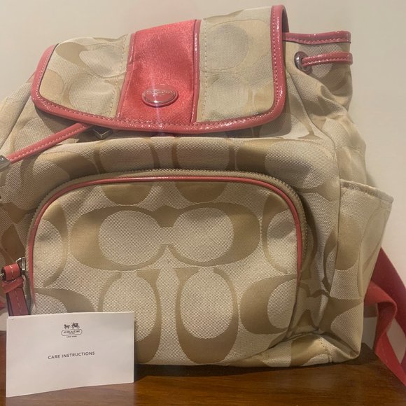 Coach backpack , never used. Great condition, gorgeous tan color with glossy pink detailing. Great size for daily use.