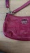 Pre-owned Authentic Coach purse with signature stitching in a vibrant Fuschia color (cross between pink and purple). Features an 8.5 inch drop leather strap plus a fully detachable convertible long fabric strap to wear as a crossbody.