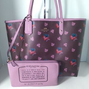 Elevate your style with this Coach reversible tote bag, featuring a stunning purple floral design. Perfect for any occasion, this bag combines elegance and functionality.