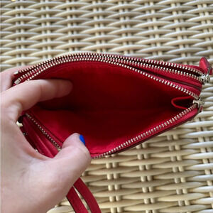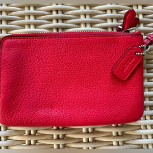 Authentic Coach F66505 Double Corner Zip Wristlet in Pebble Leather. Color red. Excellent condition without any visible flaws.