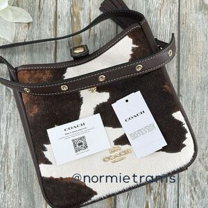 Authentic Coach Hadley Mini Crossbody Bag With Cow Print And Tassel Purse