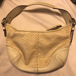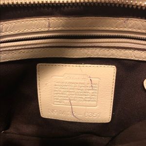 Cream colored COACH Handbag. Used but good condition. There are a few pen marks on it (see pics) and normal minor wear and tear. But very cute bag.