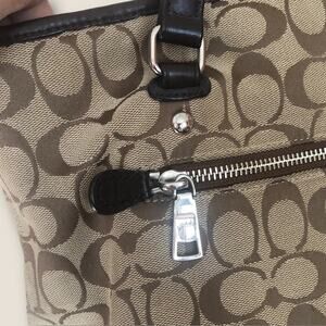 Authentic Coach Jacquard Monogram Tote Purse Brown Tan with Leather Trim