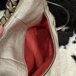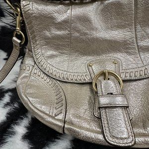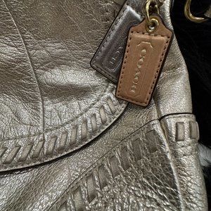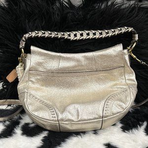 Authentic Coach Metallic Whipstitch Leather Convertible Bag in Platinum