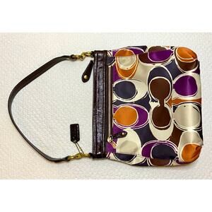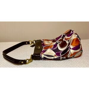 Authentic Coach Multicolored Hand Drawn Scarf Print Satin Hobo Bag 10”x11” READ