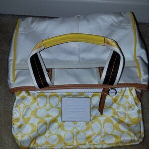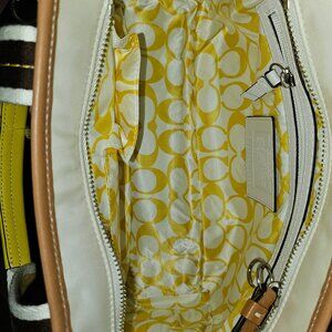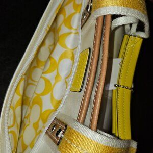 Authentic Coach NWT Hampton White Yellow Satin Tote