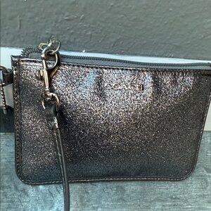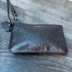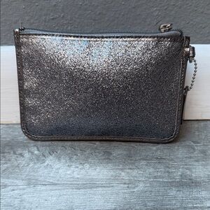 Elevate your look with this Coach wristlet. Features a shimmering silver finish. Perfect for adding sparkle to any outfit.
