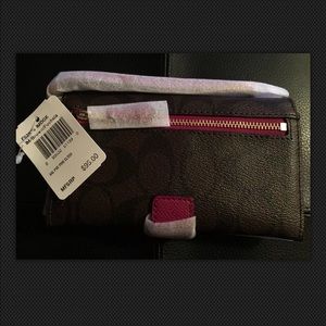 Authentic Coach Phone Wallet Wristlet Brn/Fuchsia