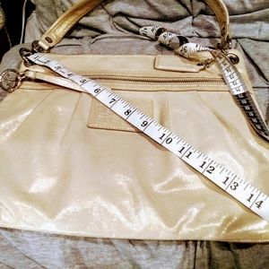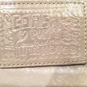 Coach Gold Poppy Tote. This Authentic Coach Poppy is in Great condition no tears or stains on inside or outside and priced at less than half it's market value. Perfect for any occasion and affordable! Current condition valued anywhere between $90-$140 Brand new starts at $180 Coach released a new budget friendly collection called Poppy for Fall 2009. This collection of vibrant and edgy pieces mixes a preppy East Coast vibe with punky sensibilities for a result that is spiritd in appeal.