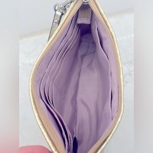Signature Plaid Logo in tan/lavender with gold metallic trim and two Coach accent charms.