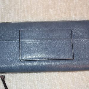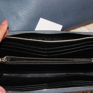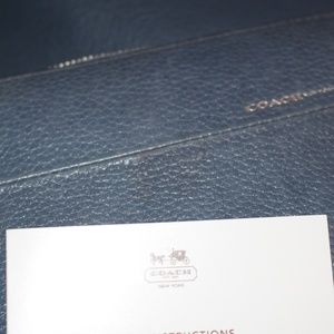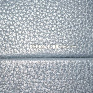 This blue/gray Coach can be come a cross body or simply be thrown over the shoulder! It comes with the matching wallet, which has multiple compartments on the inside. It is very stylish AND 100% real leather and straight from the Coach store! However, there is one or two scoffs due to mishandling. These scoffs are nearly unnoticeable though! Worn exactly three times, basically new!