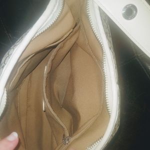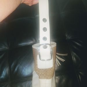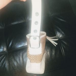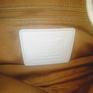 Medium Coach purse with white leather trim and classic "C" design. One of the first Coach purses I purchased.