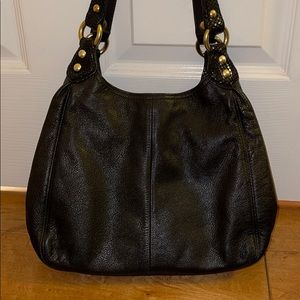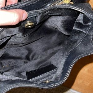 Real leather authentic Coach purse. Leather is in good condition, with small flaws as shown in photos. Inside could use a cleaning.
