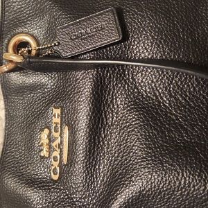 Authenic Coach Purse, double strap with 2 interior slip pockets and 1 interior zip pocket. All black leather exterior with all black interior. Previously loved in great condition other than slight wear on the straps as show in picture.