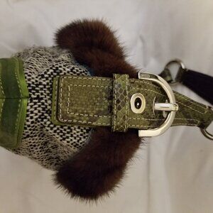 Authentic Coach RARE Limited Edition Vintage Tweed Suede Python Fur Hobo Purse