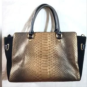 -Color: Black Suede Sides/Python front and back in browns, tans, golds, khaki and a little Metallic bronze shimmer