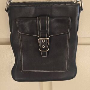 Authentic Coach Runway Black Leather Crossbody Messenger Bag Purse 9" x 7.5"