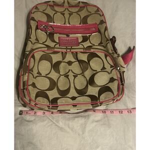 Authentic Coach Signature Poppy Backpack Tan Canvas/Pink Leather Trim F22948