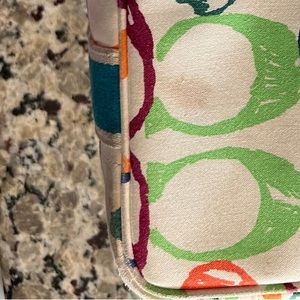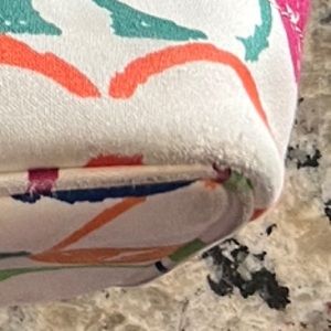 It has spots and general discoloration. Inside liner has spots. There are a few spots on the outside, please see photos for detailed condition. Measures approximately 14.5x7.5x4.