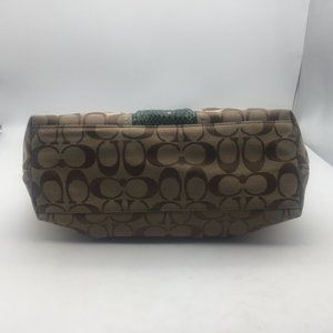 Authentic Coach Signature Tan tote bag with dark olive green python stripe in excellent pre-loved condition from a smoke-free home. A beautiful classic bag!
