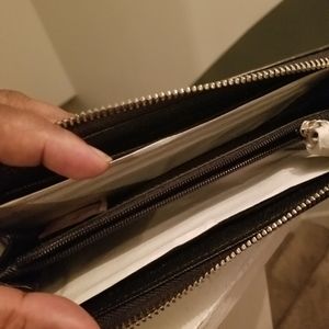 New w/o tags Never used black wallet. Cloth with leather trim